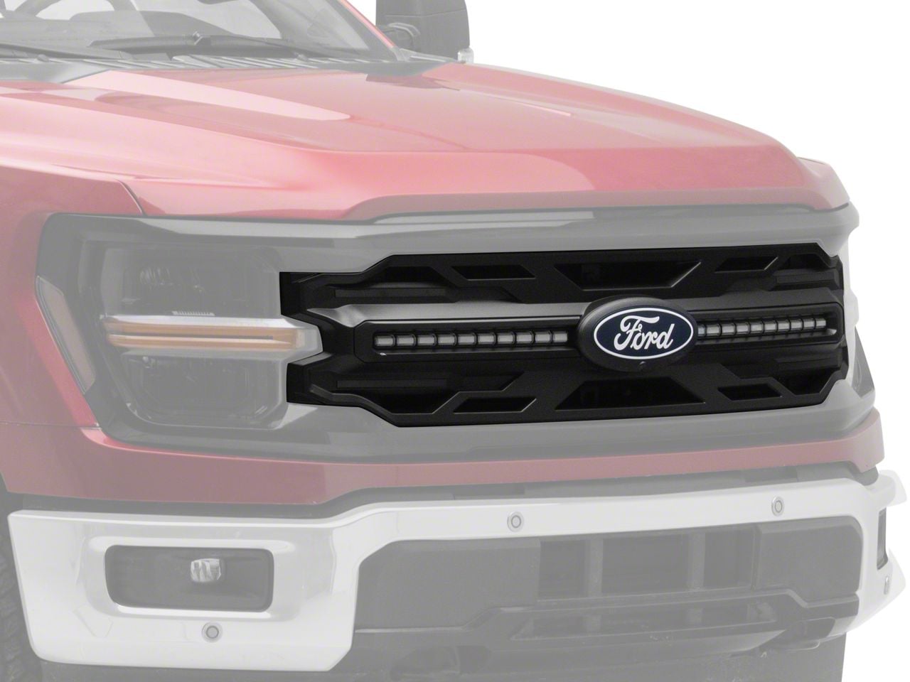 Bold Front-End Protection and Lighting. This American Modified Armor Upper Grille is designed for 2024-2026 Ford F-150 STX and XLT models. Featuring a matte black finish, this grille includes (4) amber lights, DRL, and an OEM emblem hole for seamless integration. Weighing 14.88 pounds, it offers both durability and a rugged look, while the included wiring harness splices into the stock headlight harness for easy installation.