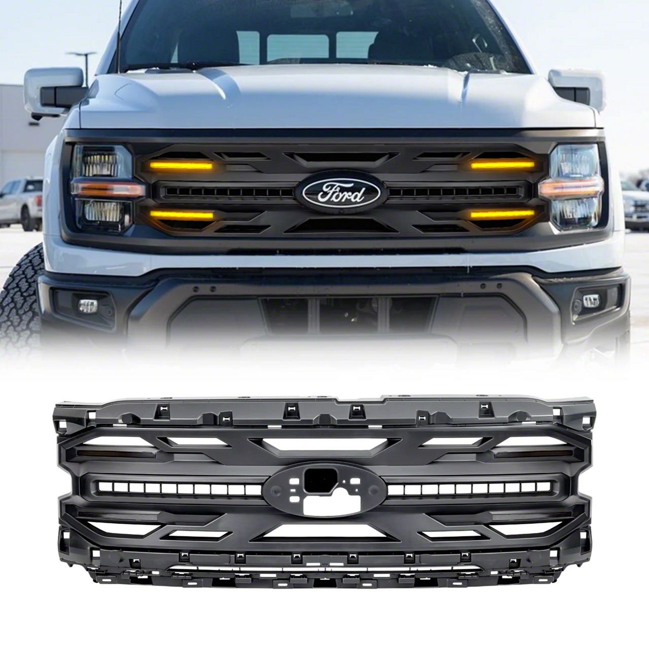 Application. This American Modified Armor Upper Grille fits 2024-2026 Ford F-150 STX and XLT models. By combining integrated amber lighting with an OEM emblem opening, it enhances forward visibility, improves front-end protection, and delivers a clean, aggressive style update that stands out on daily drives and weekend hauls alike.