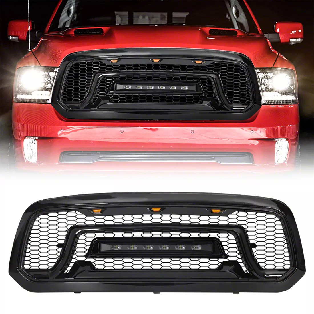 Application. This American Modified Upper Grille fits 2013-2018 Dodge RAM 1500 models. With integrated off-road lighting and a bold design, it’s the perfect upgrade for anyone looking to improve their vehicle’s off-road capability and appearance.