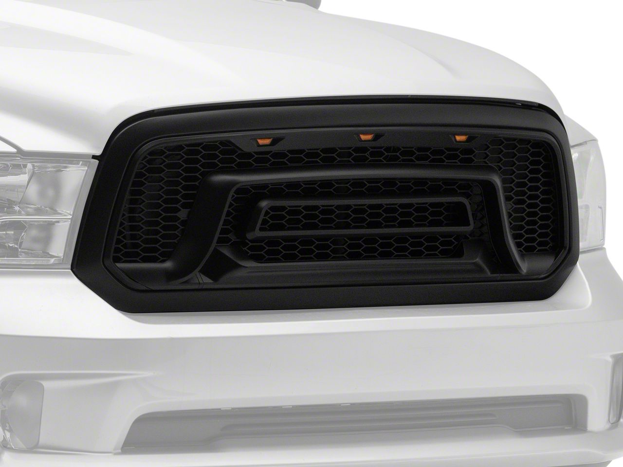 American Modified Rebel Style Upper Replacement Grille with Amber LED Lights; Matte Black (13-18 RAM 1500, Excluding Rebel)Find parts that fit my vehicle
