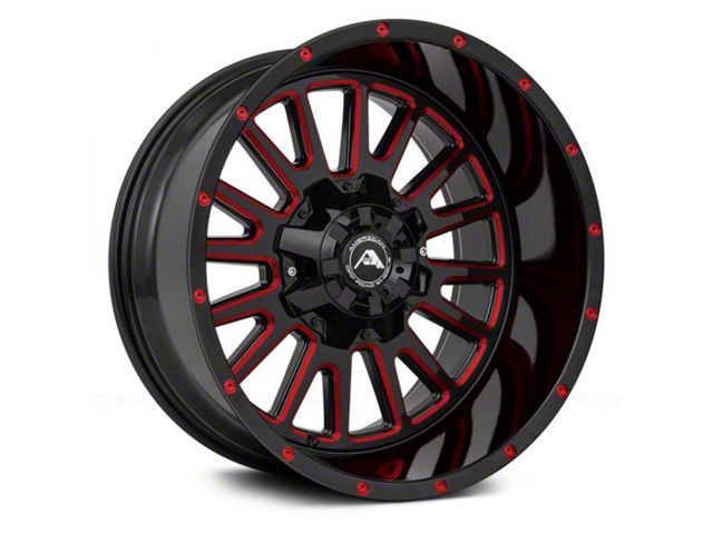 American Off-Road Wheels A105 Gloss Black Milled with Red Tint 6-Lug Wheel; 20x10; -24mm Offset. The American Off-Road Wheels A105 Gloss Black Milled with Red Tint 6-Lug Wheel offers a striking balance of style and refinement. Its unique design accentuates the vehicle's aesthetic, while the premium construction underscores its robust nature. This wheel is a perfect choice for those seeking both elegance and a strong visual statement.