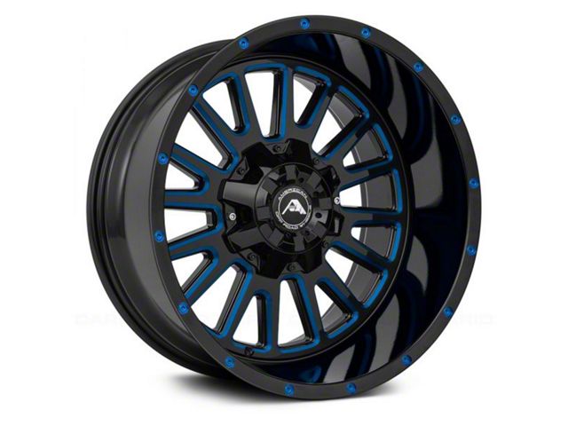 American Off-Road Wheels A105 Gloss Black Milled with Blue Tint 6-Lug Wheel; 20x12; -44mm Offset. The American Off-Road Wheels A105 Gloss Black Milled with Blue Tint 6-Lug Wheel offers a striking balance of style and refinement. Its unique design accentuates the vehicle's aesthetic, while the premium construction underscores its robust nature. This wheel is a perfect choice for those seeking both elegance and a strong visual statement.
