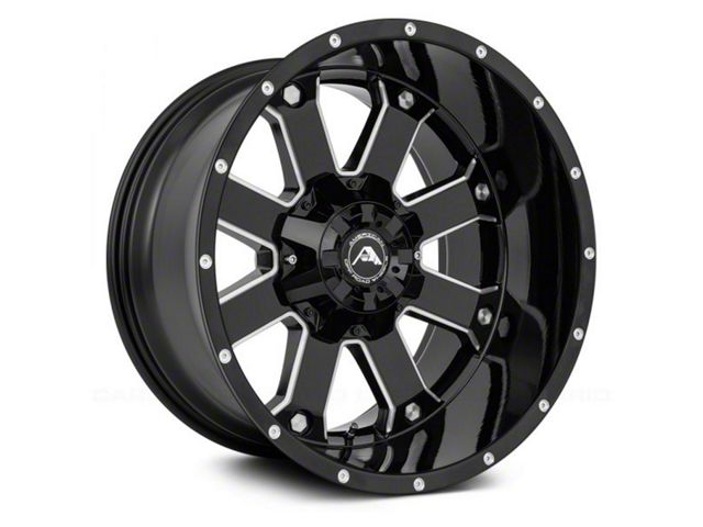 American Off-Road Wheels A108 Gloss Black Milled 6-Lug Wheel; 20x10; -24mm Offset. The American Off-Road Wheels A108 Gloss Black Milled 6-Lug Wheel offers a striking balance of style and refinement. Its unique design accentuates the vehicle's aesthetic, while the premium construction underscores its robust nature. This wheel is a perfect choice for those seeking both elegance and a strong visual statement.