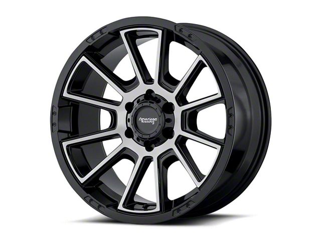 This 20x9 American Racing Intake Gloss Black Machined 6-Lug Wheel is completed in a high-quality gloss black finish with machined accents to create an impressive appearance. There's a durable clear coat that protects against driving hazards.