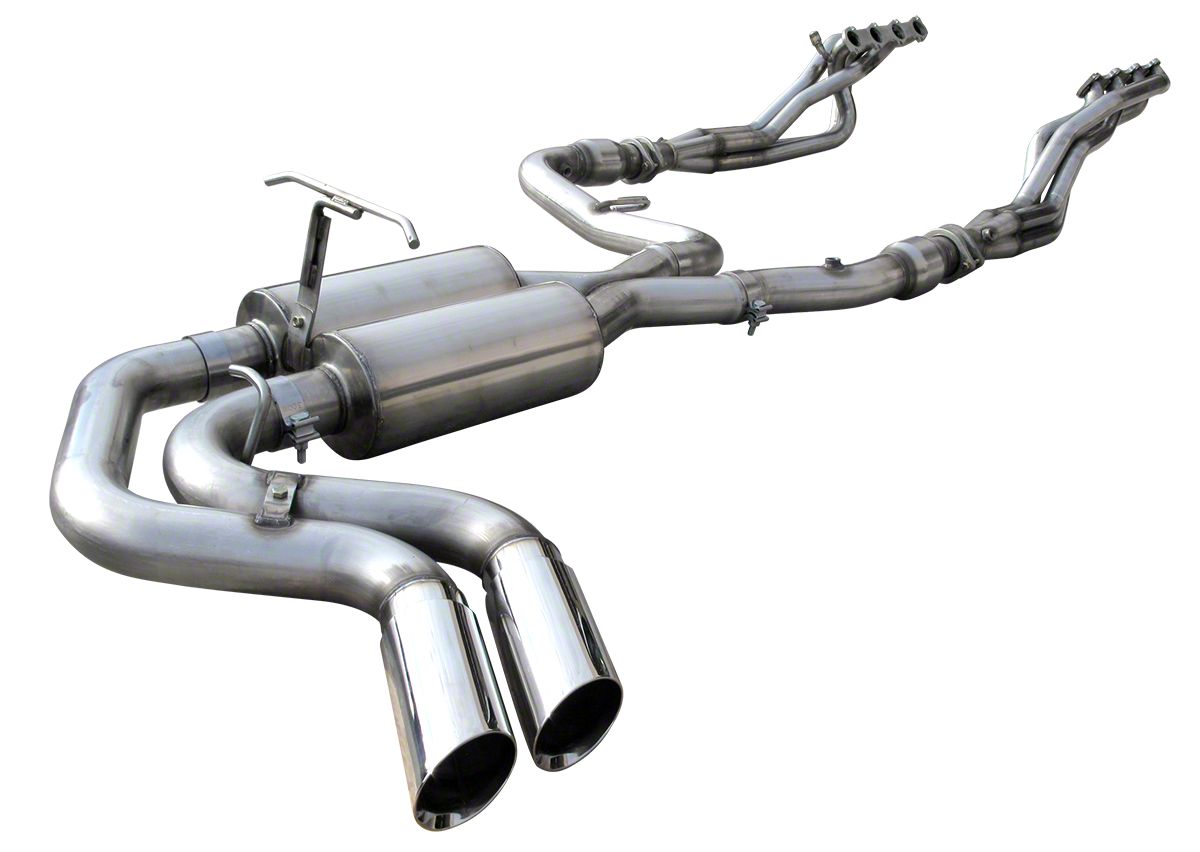 Strong, High-Quality Manufacturing. The long tube headers with a catted x-pipe are constructed using very high quality and strong materials including 304 stainless steel, welded scavenger spikes, welded inlets, and 200 cell metallic substrate material. This kit includes 3" mandrel-bent tubing, 3/8" thick laser-cut flanges, and a 1-3/4" long tube header design. The long tube headers come in a silver color.