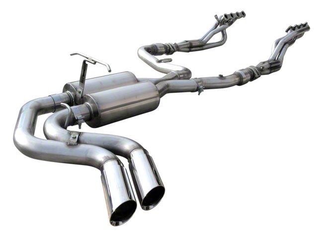 Strong, High-Quality Manufacturing. The long tube headers with a catted x-pipe are constructed using very high quality and strong materials including 304 stainless steel, welded scavenger spikes, welded inlets, and 200 cell metallic substrate material. This kit includes 3" mandrel-bent tubing, 3/8" thick laser-cut flanges, and a 1-3/4" long tube header design. The long tube headers come in a silver color.