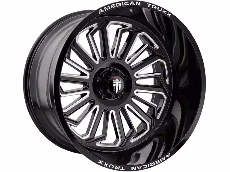 The 20x10 American Truxx Butcher Gloss Black Milled 6-Lug Wheel is completed in a high-quality gloss black finish, with steel milled accents. Thanks to a durable clear coat, the finish looks amazing and also protects against the rigors of driving.