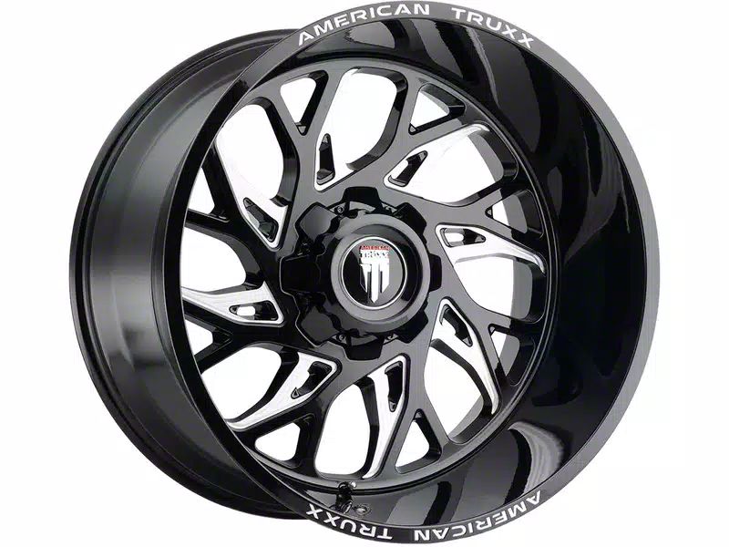This 20x10 American Truxx Destiny Gloss Black Milled 6-Lug Wheel is completed in a high-quality gloss black finish with steel milled accents that will be the envy of everyone. There's a durable clear coat that protects against driving hazards.