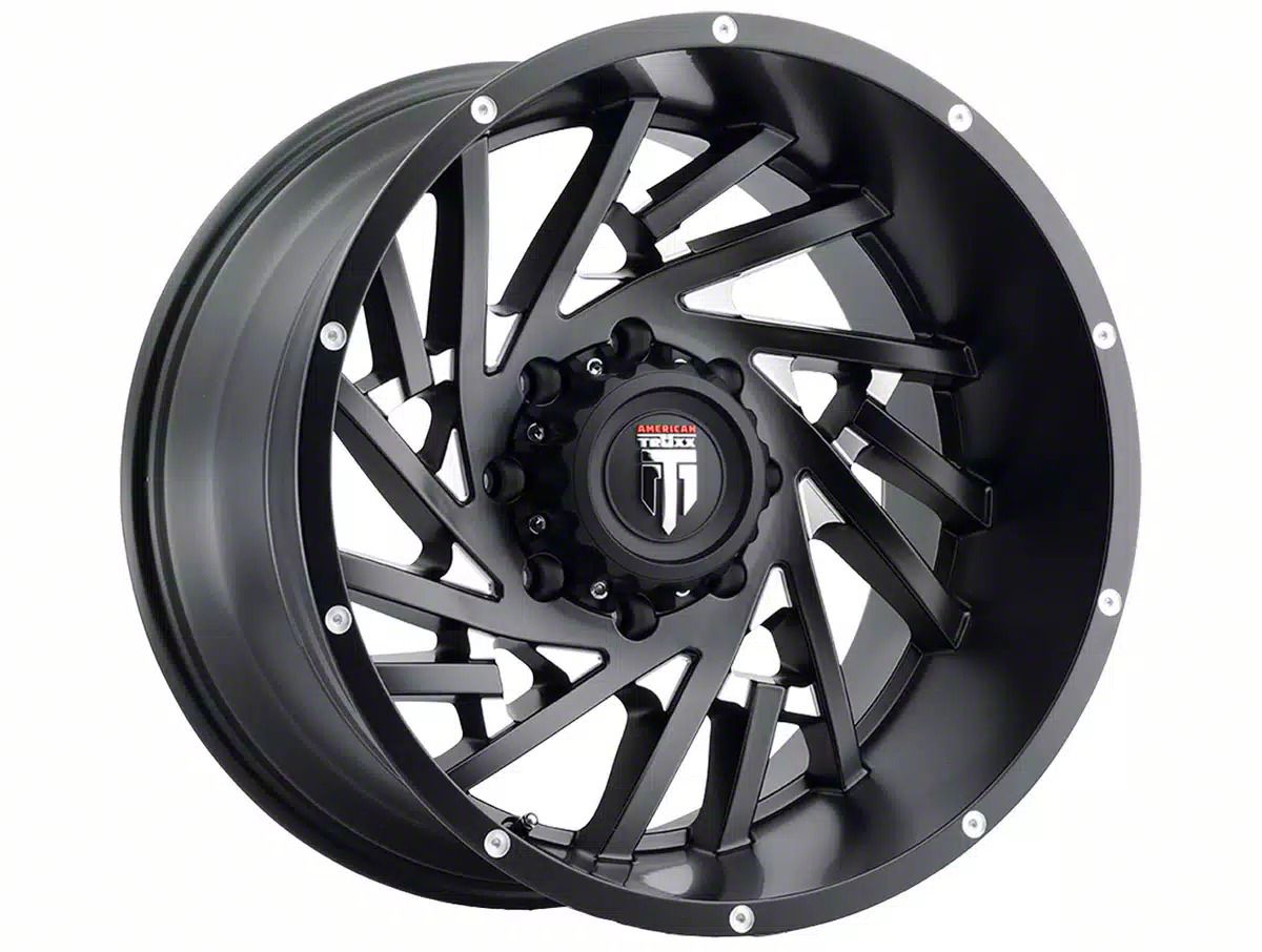 American Truxx Web Satin Black Milled 8-Lug Wheel; 20x12; -44mm Offset This American Truxx Web Satin Black Milled 8-Lug Wheel; 20x12; -44mm Offset brings a sleek and modern touch to your vehicle with its striking design. Its refined finish and bold styling make it an excellent choice for those looking to enhance their car’s visual appeal. Whether you're aiming for a sporty look or a more aggressive stance, this wheel stands out as a premium addition. Perfect for drivers who appreciate a stylish upgrade.