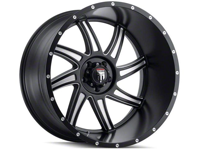 This 20x10 American Truxx Vortex Gloss Black Milled 6-Lug Wheel is completed in a high-quality gloss black finish with steel milled accents that will be the envy of everyone. There's a durable clear coat that protects against driving hazards.