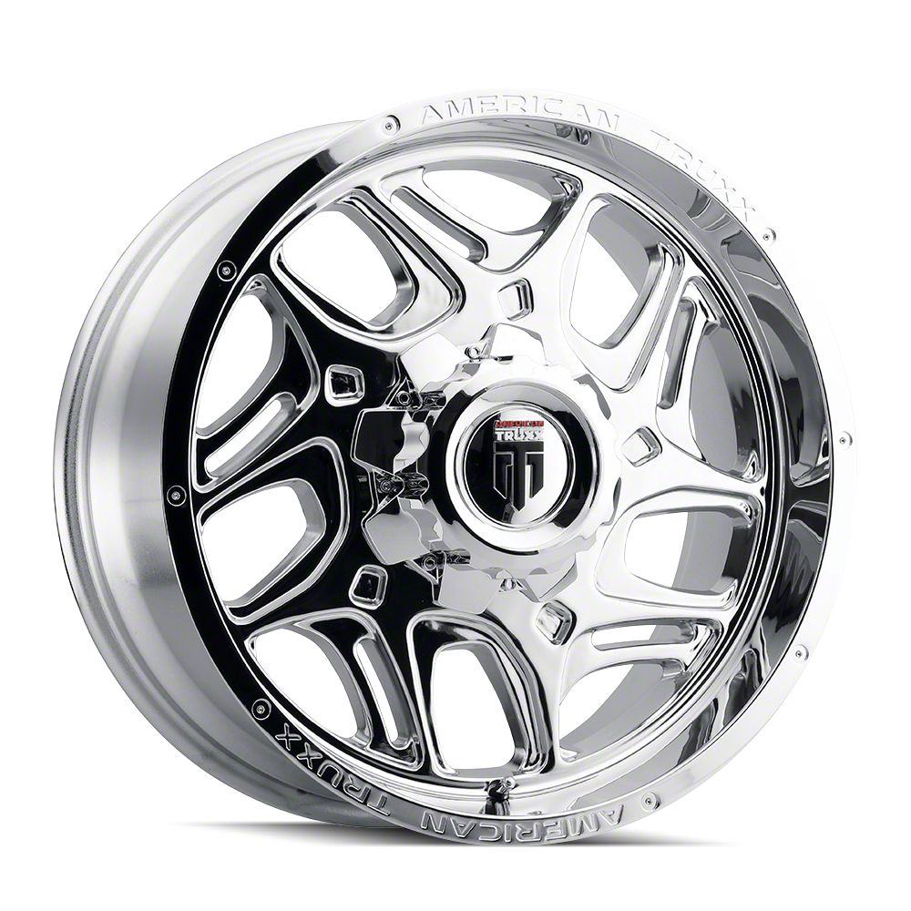 American Truxx Sweep Chrome 8-Lug Wheel; 20x9; -12mm Offset is a perfect blend of style and rugged design, making it a standout choice for those looking to enhance their vehicle's aesthetic appeal. Its bold, dark metallic finish pairs seamlessly with a wide variety of vehicle styles, offering both modernity and durability. Built by American Truxx, this wheel is designed to elevate your vehicle's appearance with its robust presence.