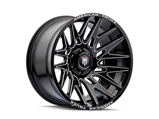 American Truxx Evolution Gloss Black Milled 8-Lug Wheel; 22x12; -44mm Offset offers a striking balance between style and durability. The design speaks to the brand's commitment to quality, enhancing the vehicle's appearance with its distinct look. This wheel, with its unique aesthetics, is ideal for drivers who appreciate a blend of modern design and robust functionality.