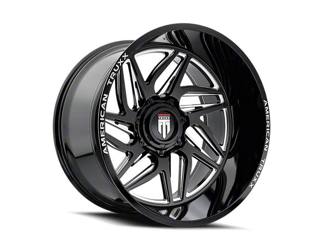 American Truxx Goliath Gloss Black Milled 8-Lug Wheel; 24x14; -76mm Offset exudes sophistication with its finish, offering a sleek and modern appeal to any vehicle it adorns. The design is meticulously crafted to enhance the aesthetic of your vehicle, giving it a distinctive and upscale look. Perfect for those seeking to elevate their vehicle's style, this wheel blends seamlessly with both contemporary and classic vehicle designs, making it a versatile choice for a wide range of vehicles. Its robust construction ensures durability, making it a reliable choice for drivers who value both style and quality.