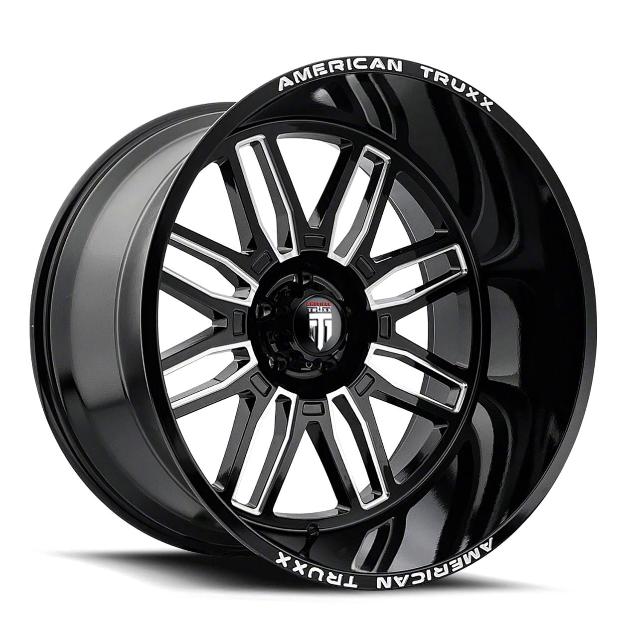 American Truxx Restless Gloss Black Milled 8-Lug Wheel; 24x14; -76mm Offset This American Truxx Restless Gloss Black Milled 8-Lug Wheel; 24x14; -76mm Offset brings a sleek and modern touch to your vehicle with its striking design. Its refined finish and bold styling make it an excellent choice for those looking to enhance their car’s visual appeal. Whether you're aiming for a sporty look or a more aggressive stance, this wheel stands out as a premium addition. Perfect for drivers who appreciate a stylish upgrade.
