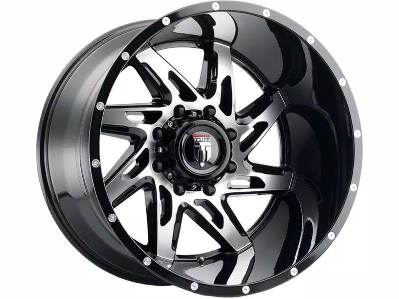 This 20x10 American Truxx Spyder Gloss Black Machined 5-Lug Wheel is completed in a high-quality gloss black finish with machined accents that will be the envy of everyone. There's a durable clear coat that protects against driving hazards.