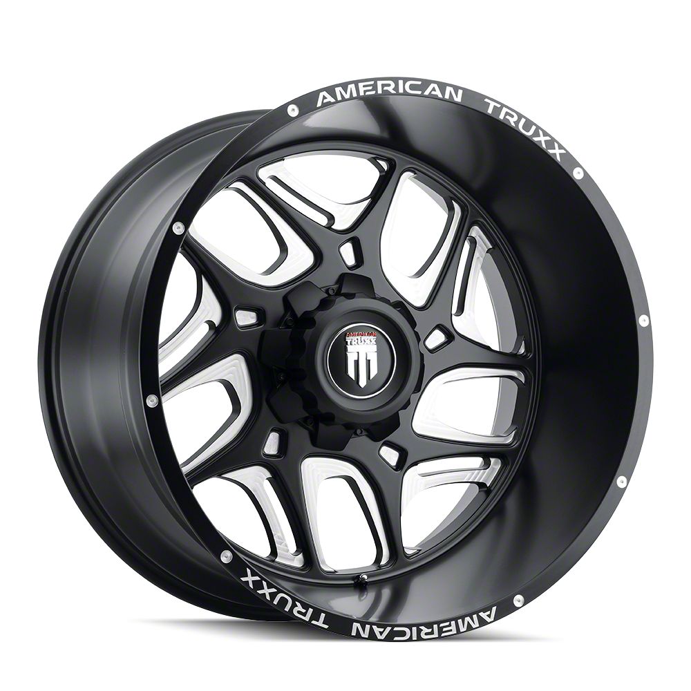 AmericanTrucks no longer carries the American Truxx Sweep Satin Black Milled 8-Lug Wheel; 24x14; -76mm Offset (06-08 RAM 1500 Mega Cab). Please check out 1994-2001 Dodge Ram 1500 Wheels & Tires for an updated selection.
