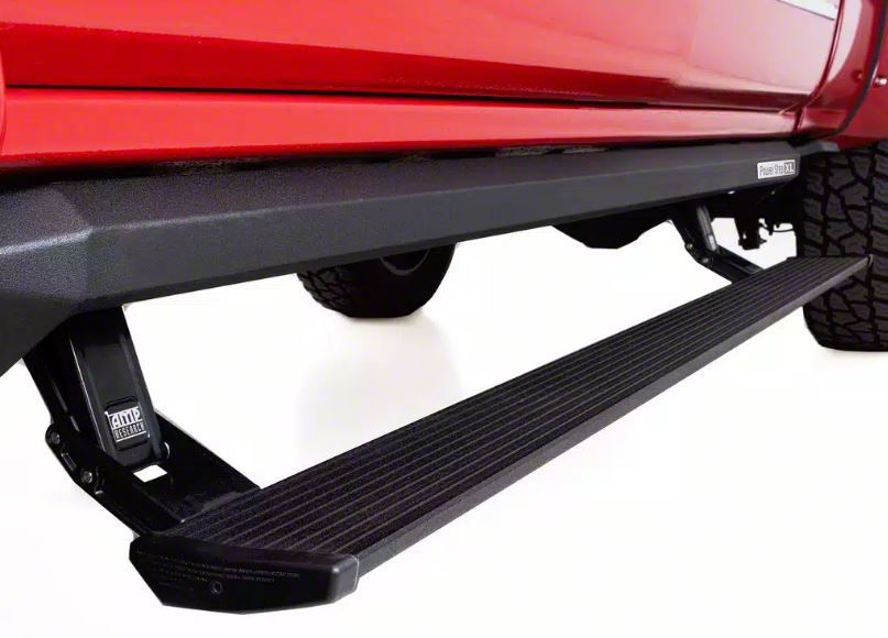 Extended Reach for Lifted Trucks. The Amp Research PowerStep XL Running Boards are designed to provide easier access to lifted vehicles by offering a greater step drop than standard PowerSteps. They extend automatically when the doors open, creating a secure and stable platform for entering and exiting the cab. When the doors close, they retract for a streamlined look that maintains the truck’s rugged styling.