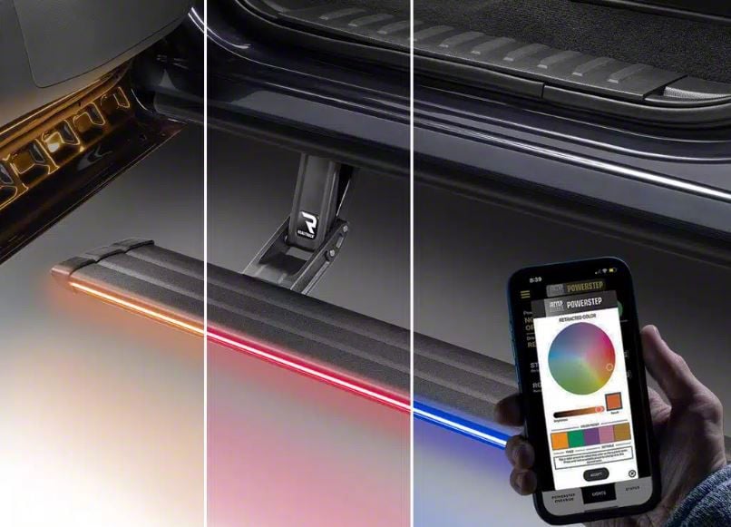 AMP PowerStep™ Vision's intuitive design automatically deploys when you open a door, so it's always there when needed. With the AMP Research Smart Series app, take total control over the functionality of your AMP PowerStep™ Vision steps, including the Vision's flagship lighting. Customize all lighting functions and command retraction or deployment via your iOS or Android smart device. If these features aren't enough, AMP Powerstep™ Vision features an easy installation thanks to its bolt-on design and simple Plug-n-Play technology. Even the driveway do-it-yourselfers will find themselves stepping out in record time.