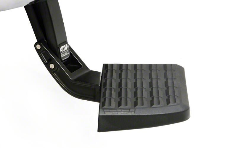Go ahead and step on it. Bedstep is a real time saver. Not to mention knee and back saver. Strong and rugged, this non-slip, retractable bumper step quickly flips down with the nudge of a foot providing a faster, easier and safer way to load or unload your pickups cargo. Supports up to 300 lbs. Frame mounts under the rear bumper so it works even with an open tailgate or when towing.