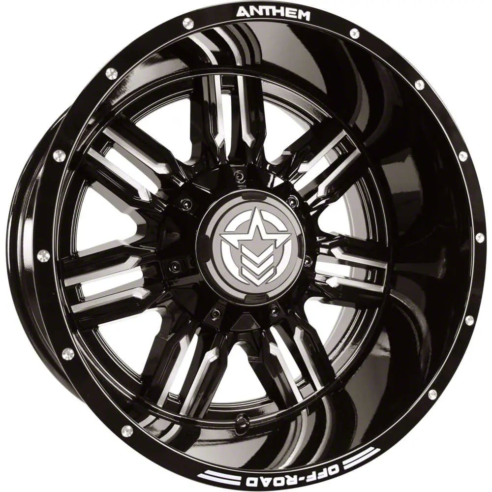 Gloss Black Finish with Milled Accents. This 20x12 Anthem Off-Road Wheels Equalizer Series Wheel is completed in a high quality black finish with milled accents for a striking contrast in appearance that everyone will envy. For added protection and good looks, this Wheel features a durable, gloss clear coat that is tough enough to stand up against the hazards of everyday driving - including road chips and pitting.