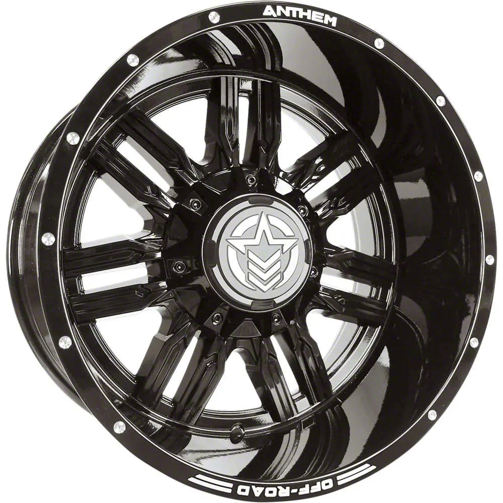 Gloss Black Finish. This 20x12 Anthem Off-Road Wheels Equalizer Series Wheel is completed in a high quality black finish for an aggressive appearance that will make others green with envy. For added protection and good looks, this Wheel features a durable, gloss clear coat that is tough enough to stand up against the hazards of everyday driving - including road chips and pitting.