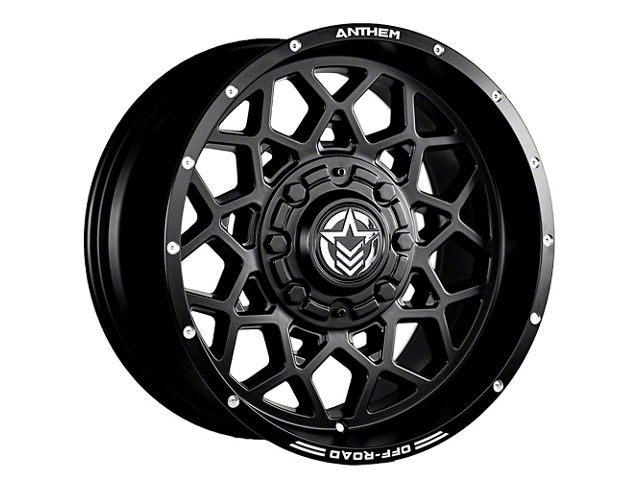 Anthem Off-Road Avenger Satin Black 6-Lug Wheel; 17x9; 0mm Offset The Anthem Off-Road Avenger Satin Black 6-Lug Wheel combines a sleek, sophisticated design with premium construction that enhances the visual appeal and complements a wide range of vehicle styles. This wheel is perfect for those seeking to make a bold statement while maintaining elegance and robustness.