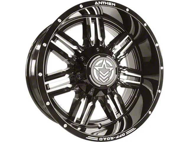 Anthem Off-Road Equalizer Gloss Black Milled 8-Lug Wheel; 20x12; -44mm Offset. The Anthem Off-Road Equalizer Gloss Black Milled 8-Lug Wheel offers a striking balance of style and refinement. Its unique design accentuates the vehicle's aesthetic, while the premium construction underscores its robust nature. This wheel is a perfect choice for those seeking both elegance and a strong visual statement.