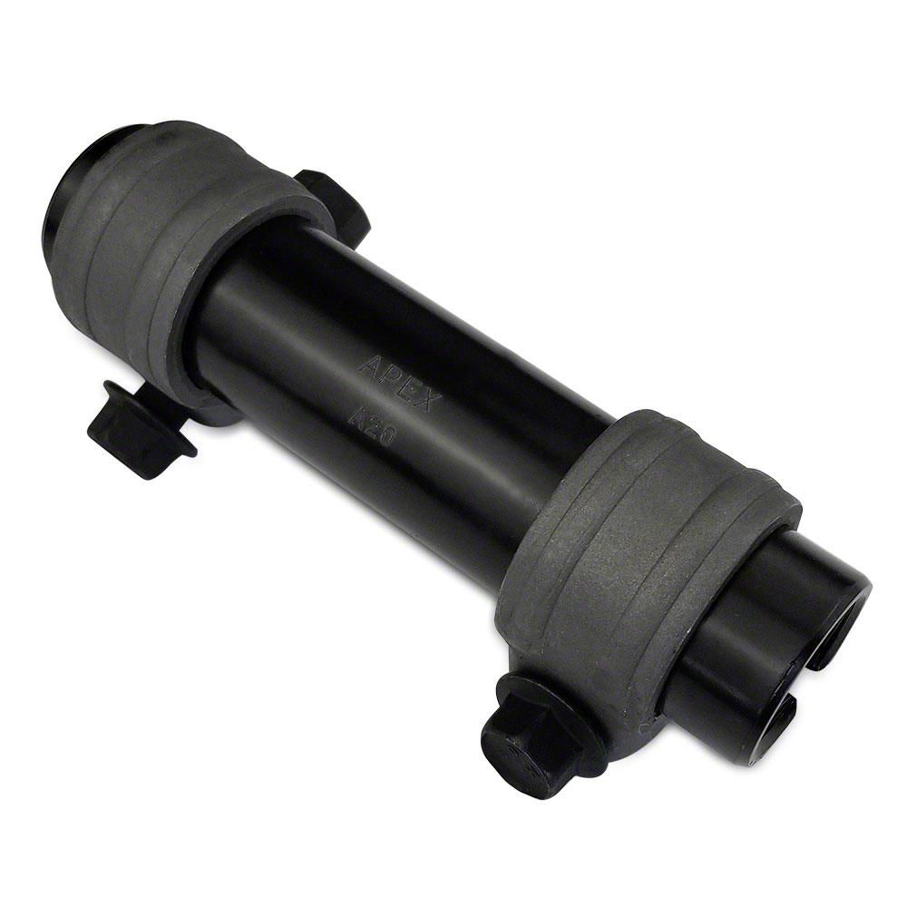 Our tie rod adjusting sleeve is beefed up to prevent deflection under hard steering inputs in rough road conditions. Adjusting sleeves are a common weak spot, and as the lower quality units wear, they distort the vehicle alignment causing greater tire wear, odd steering feel and lower fuel economy as the front tires fight each other.