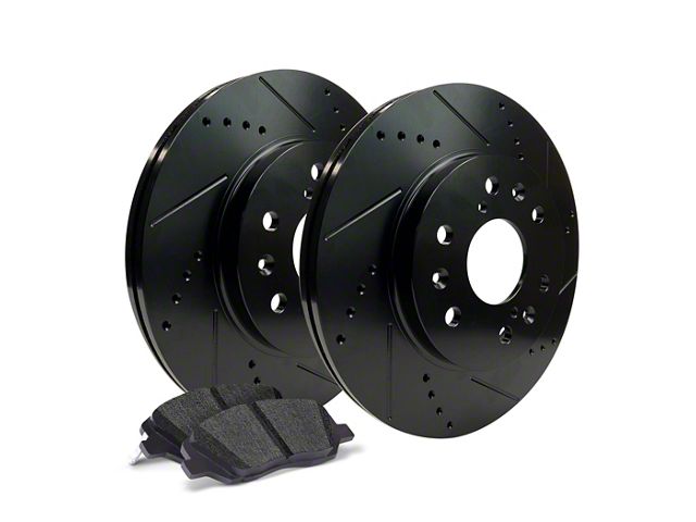 Quieter Ride, and Extended Lifespan. The cross-drilled and slotted design of the rotors significantly improves heat dissipation, reducing the risk of brake fade during intense use. Additionally, this innovative design contributes to reduced brake noise and dust, maintaining cleaner wheels and a quieter ride. The Friction Point pads included in the kit are crafted for durability, offering a longer lifespan and consistent braking performance.