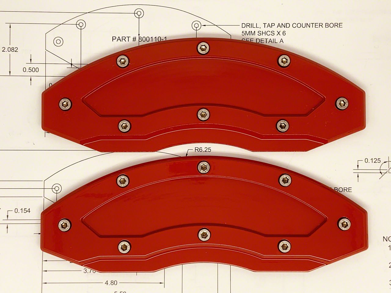 Construction and Appearance. Made from durable ABS plastic, these caliper covers feature a heat-resistant coating that resists fading and cracking under typical brake temperatures. The red finish stands out behind most wheel designs, giving your truck a sportier, more aggressive look.