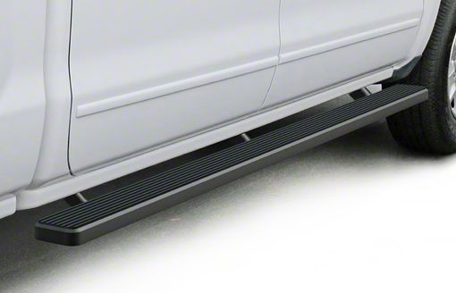 Reliable Running Boards for Off-Road Use. Getting in and out of your GMC Sierra 1500 can get tricky, especially when it’s parked on rocky, rough, or bumpy terrain. For this reason, it’s smart to upgrade your truck by installing these Black 4-Inch Step Running Boards. Not only do these boards have the strength to carry heavy loads, but they also feature 4-inch wide stepping surfaces to give your feet more support. Additionally, they come in a sleek matte black color, which gives your GMC Sierra an aggressive look.