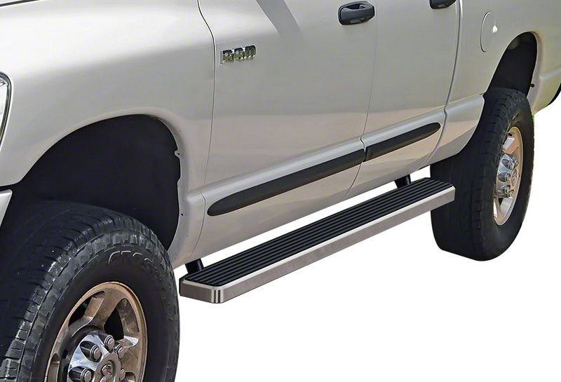 Application. These 4-inch iStep Running Boards - Hairline Silver is designed for the 2002-2008 Dodge RAM 1500 Quad Cab.