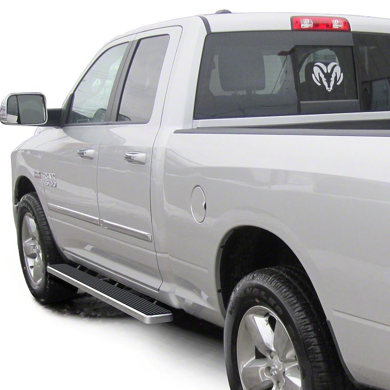 Application. These 4-inches iStep Running Boards; Hairline Silver are designed to fit all Dodge RAM 1500 Quad Cab models from 2009-2018.