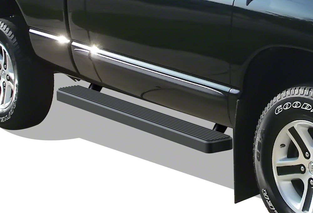 Stylish but Reliable Steps. Step up your Dodge RAM’s look with stylish 5-inches iStep Running Boards that comes in a stealthy matte black finish. The sleek design, however, is not only for good looks. They also provide a secure and easy stepping area in and out of your truck. In addition, the cab-length running boards also serve as additional side protection for your Dodge RAM.