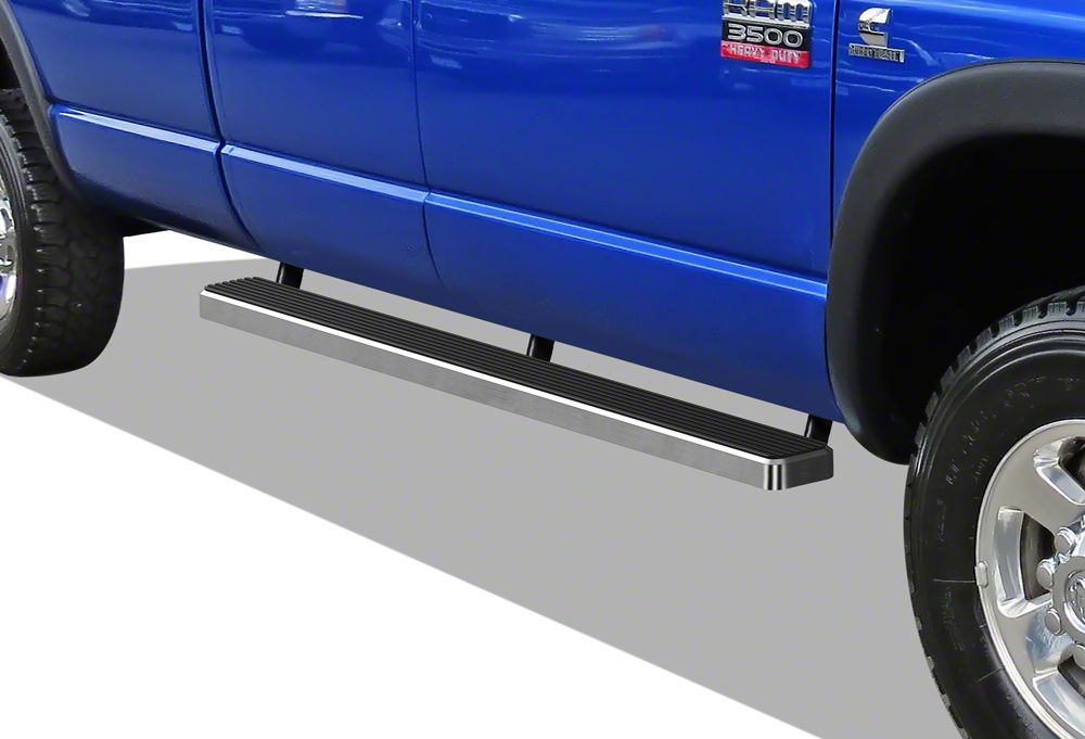 Application. This pair of 5-inch iStep Running Boards with Hairline Silver Finish is designed to fit all 2002-2008 Dodge RAM 1500 Quad Cab models.