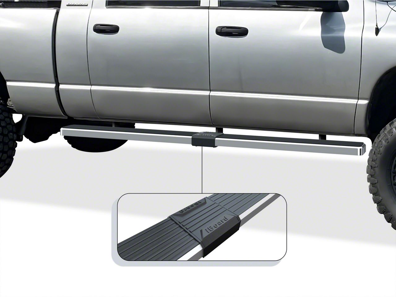 Practical and Stylish Truck Accessory. If you are a smart shopper, then you won’t regret getting a pair of 5-inch iStep Running Boards in Hairline Silver for your Dodge RAM 1500 Regular Cab. These boards will not only give your truck a more rugged look, but also provide safe steps by giving more space to your footing. Furthermore, these boards feature non-slip pads that prevent accidents from happening such as slips and falls, which is commonly experienced when wearing wet and muddy shoes.