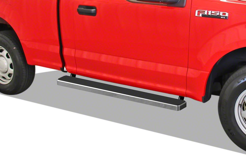 Application. These 5-Inch iStep Running Boards in Hairline Silver finish will fit all 2015-2026 Ford F-150 Regular Cab models.