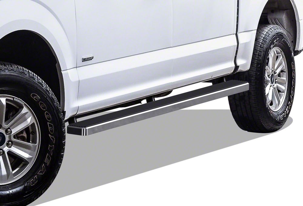 Easy and Secure Cabin Access. Getting in and out of your truck can be tricky when the road is wet or muddy. These 5-Inch iStep Running Boards will give your passengers an easy and secure access to the cabin of your Ford F-150. With wide step pads and full-length bars, these running boards offer plenty of step surfaces so you don’t have to worry about accidentally slipping. The rubber treads of these step bars also offer maximum traction in any weather.