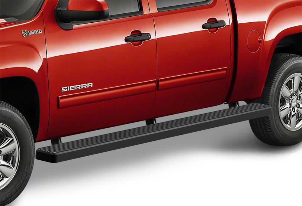 Application. These Black 5-inch iStep Wheel-to-Wheel Running Boards have been specially designed for 2007 to 2018 GMC Sierra 1500 Crew Cab models.