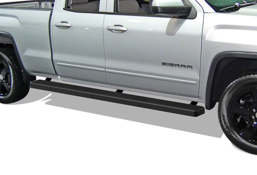 Application. These Black 5-inch iStep Wheel-to-Wheel Running Boards have been specially designed for 2007 to 2018 GMC Sierra 1500 Extended or Double Cab models.