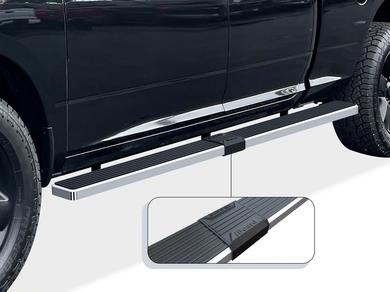 Rugged Running Boards. The 5-inch iStep Wheel-to-Wheel Running Boards in Hairline Silver offer an excellent way to step into your raised RAM 1500. Their heavy-duty design and slip-resistant step pads also ensure safety, while their sturdy construction delivers unrelenting side protection against damage caused by gravel splashes and impacts from large trail objects.