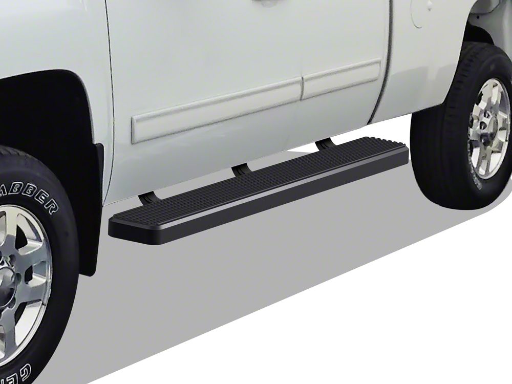 Stylish, Multi-Functional Step Boards. Make your Silverado ready for the off-road trips and daily drives by mounting these 6-Inch iStep Black Running Boards. The wide 6-inch step areas are furnished with grooves that run the entire length of the boards for anti-slip functionality. Moreover, these solid platforms also serve as side shields that block various trail debris that can cause potential damage such as dents and scratches. The iPhone-inspired look of these black step boards features rectangular ends with rounded corners to eliminate the sharp edges, sporting an elegantly bold appeal.