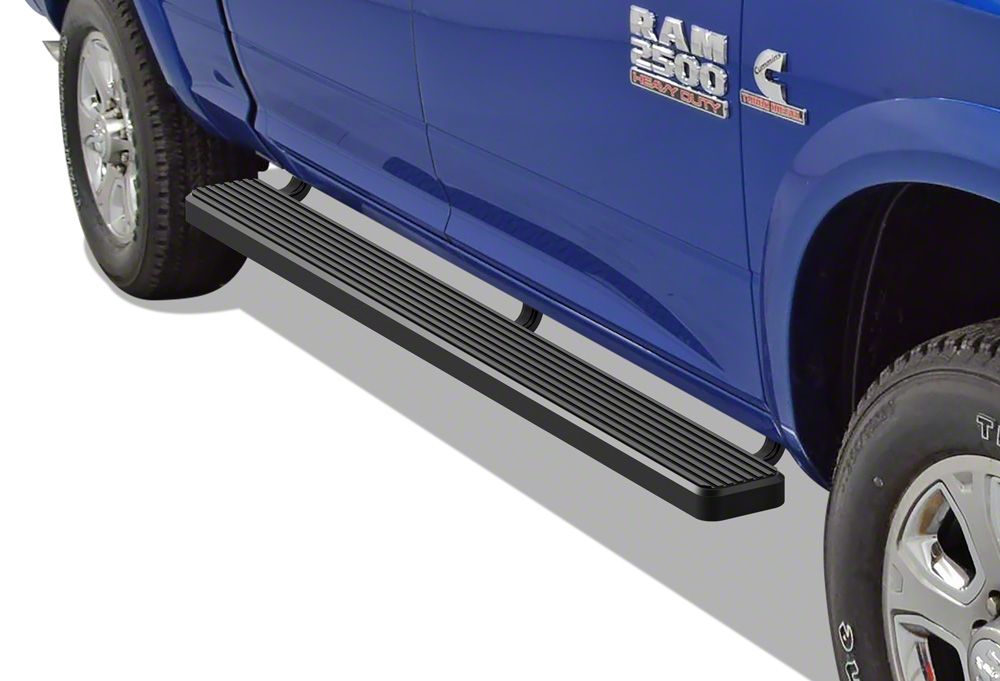 One-Piece Step Boards and Side Armors. Head to the trails on your RAM equipped with these 6-Inch iStep Black Running Boards. These running boards ensure that your truck is protected from various trail debris potentially damaging your door surfaces and side panels. Each board comes in an iPhone-inspired, solid, one-piece design that is ideal for those who prefer comfortable steps that do not protrude a great deal to the side while maintaining a high ground clearance for off-road applications.