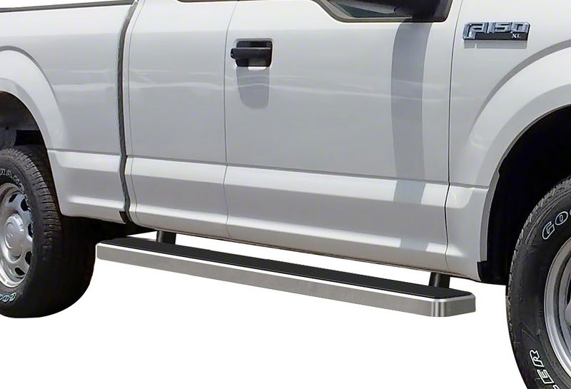 Comfortable Cab Access With Side Protection. Give your F-150 a stylish and practical modification by installing these 6-Inch iStep Running Boards with Hairline Silver Finish. This pair of step boards provides easier access into your cab while offering side protection. The boards act as side armor by blocking debris and other fragments tossed along your truck’s way. Each board is also furnished with a full-length, skid-resistant step pad for maximum gripping surfaces. The solid one-piece design eliminates end caps and sharp edges while reinforcing your F-150’s sleek elegance.