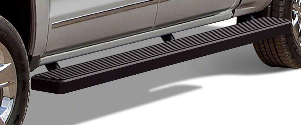 Aircraft-Grade Aluminum Construction. These 6-inch iStep Running Boards are constructed from aircraft-grade 6061 aluminum, known for its durability and light weight. These qualities make it the perfect add-on to a hardworking truck like the GMC Sierra. These running boards have non-slip pads on top for better grip, especially on wet and muddy driving conditions. They have a powder coated black finish that makes the truck look more aggressive.