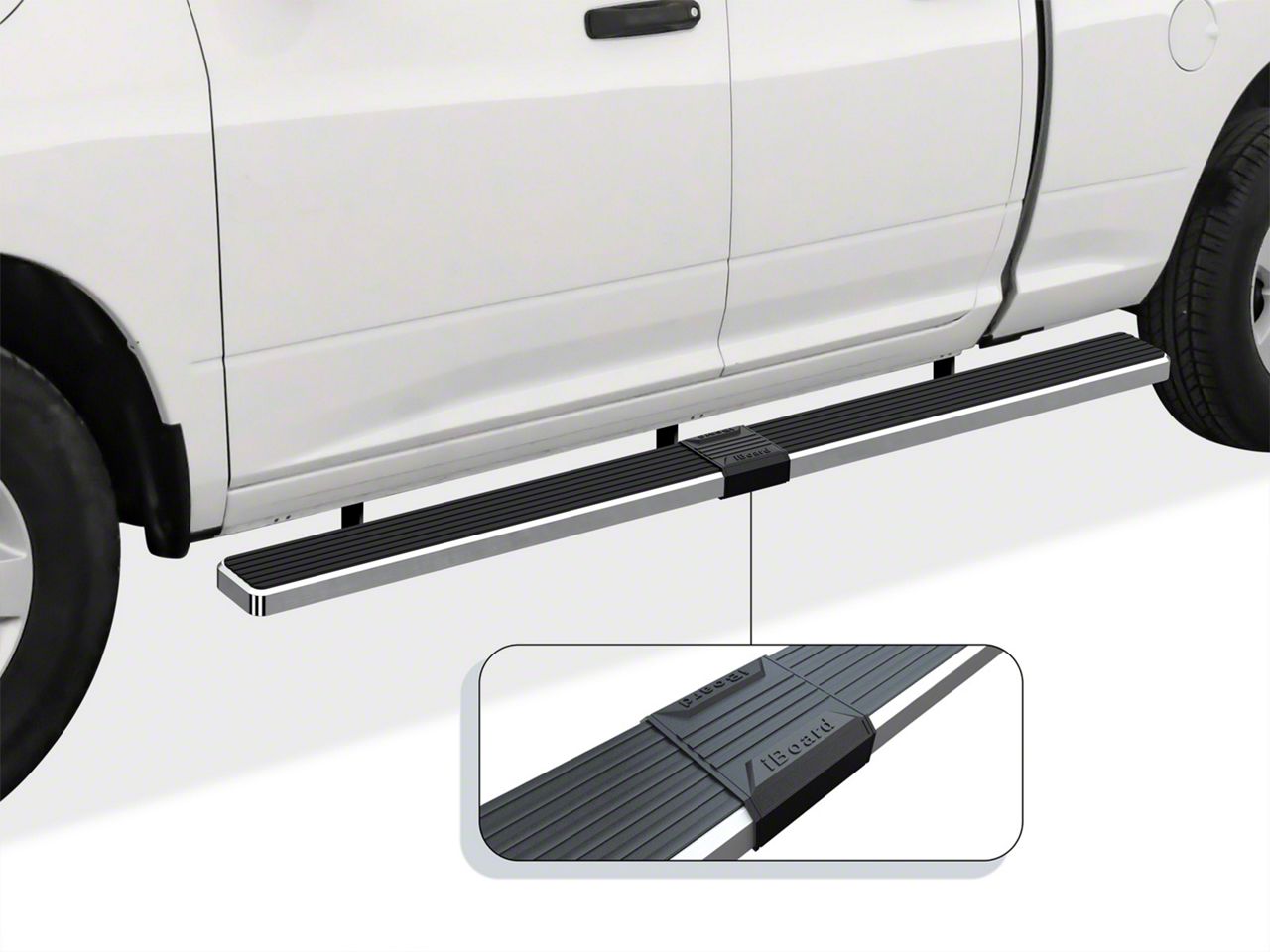 Lasting Durability. Built to match the demands of your RAM’s lifestyle, these boards are made of heavy-duty stainless steel alloy covered in a protective hairline silver finish. These frameworks exhibit exceptional strength, high rigidity, and lasting corrosion resistance. Each board comes with a pre-installed, full-length, UV-resistant rubber pad to secure your stepping anywhere along the length of the platform under all types of weather. These boards also feature a sliding channel design on the underside to facilitate easier installation.