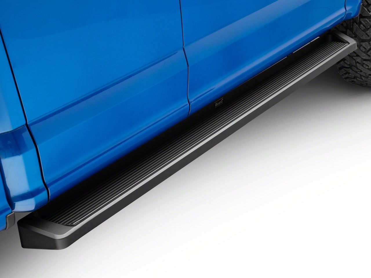 High-Quality Running Boards. Toughen up your Ford F-150 with these 6-inch Running Boards. These remarkable running boards not only offer you a stylish and more convenient way to mount your raised truck. They also feature raised ends for extra protection against mud, while their solid construction provides superior protection against damage caused by road hazards and gravel splashes. Indeed, these running boards deliver the best in convenience, safety, and styling.