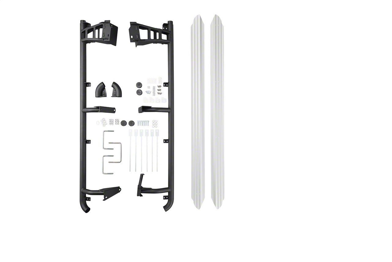 Hardwearing Build Quality. These side step bars are constructed from high-grade tubular steel that’s mandrel-bent to exact specifications for components that offer exceptional durability and a precise fit. Meanwhile, their tread plates are crafted from high-grade extruded aluminum for strength and corrosion resistance. These step bars also include synthetic returns, which cap the ends of the bars for a clean look. Finally, these components are finished with a satin black powder coat finish that can also be painted to match your truck’s body color.