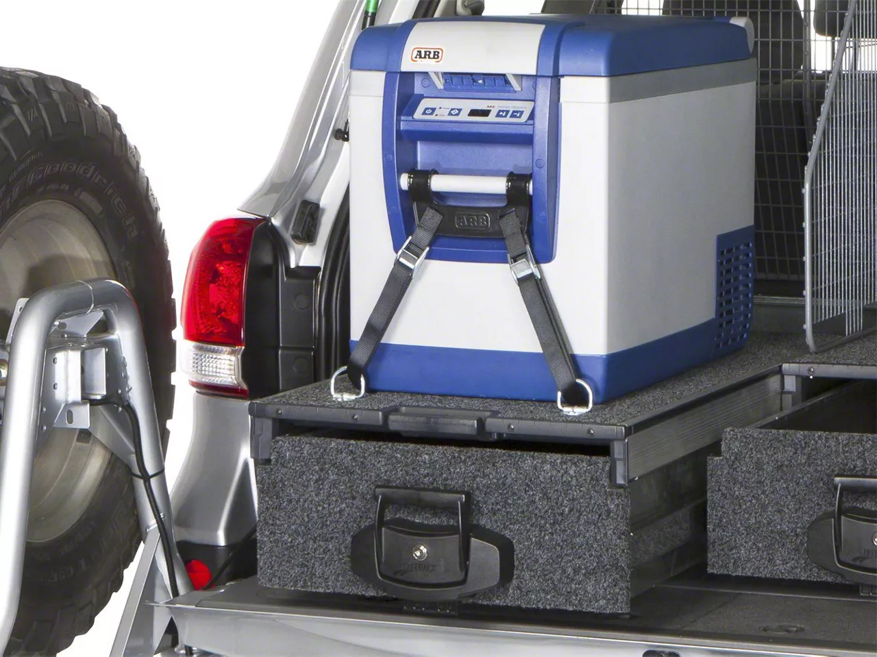 Elevated Storage Solutions. This Modular Roller Drawer is a far cry from the cheaper versions on the market. It's designed and engineered with practical features such as a roll-out deck for mounting your tiny portable fridge, anti-roll back system for easy one-hand operation, and a self-locking mechanism to keep the drawer tightly shut during drives.
