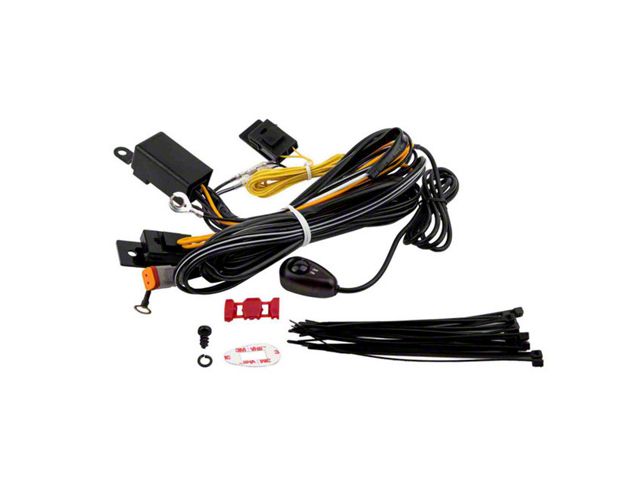 Construction and Appearance. This wiring harness features a waterproof Deutsch plug, ensuring durability and protection against harsh weather conditions. The single lead design supports up to 240 watts, and it includes a surface mount switch with an LED indicator for easy operation. Additionally, the harness comes equipped with a heavy-duty 30 amp relay for enhanced performance.